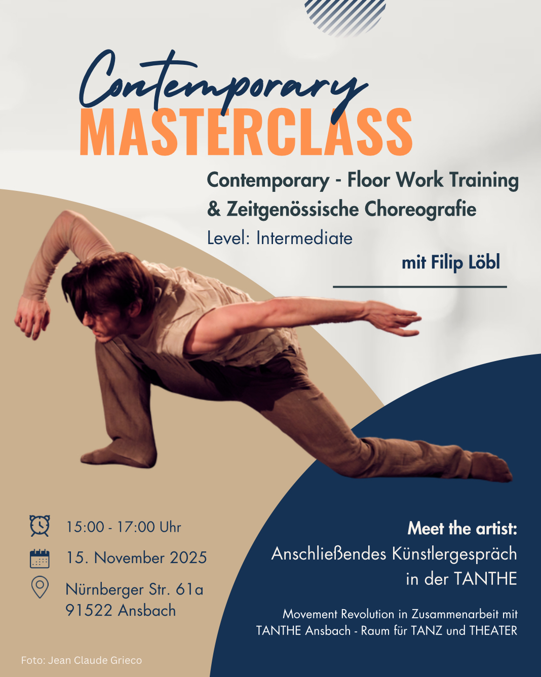 Am 15. November habt ihr die Gelegenheit einen Contemporary Floor Work Workshop mit Filip Löbl @filip_lobl zu besuchen.